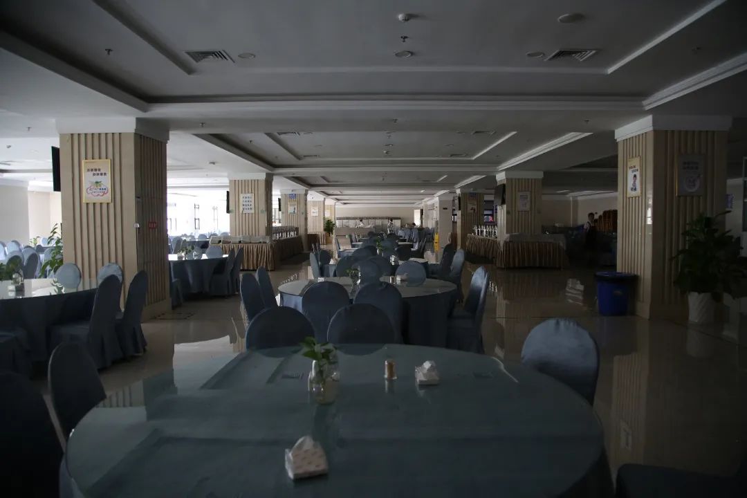 集團(tuán)食堂就餐區(qū)域燈光全部關(guān)閉,室內(nèi)光線全來(lái)自于自然光。
