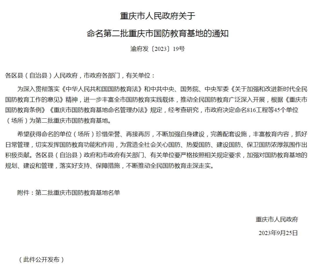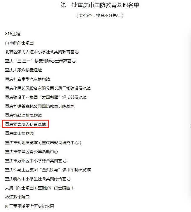 近日,重慶市人民政府公布了第二批重慶市國(guó)防教育基地名單,位于兩江新區(qū)的重慶零壹航天科普基地成功入選。