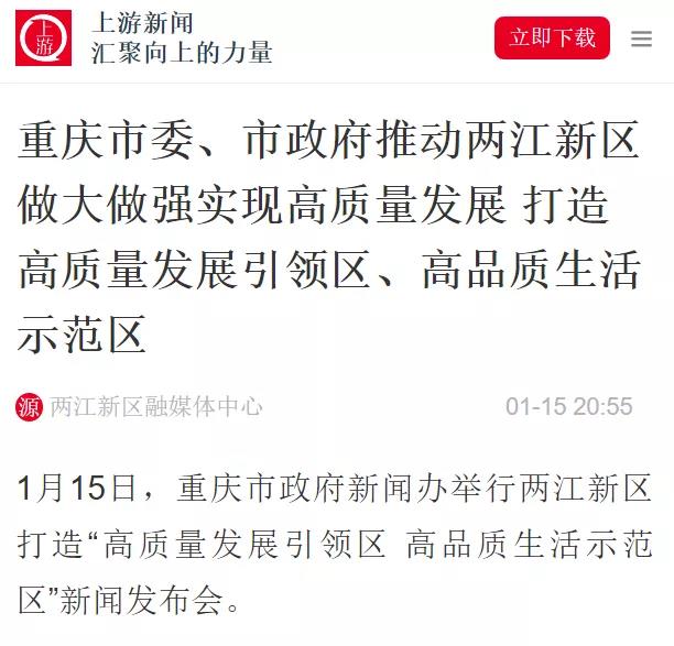 會(huì)議透露哪些重要信息?打造高質(zhì)量發(fā)展引領(lǐng)區(qū)和高品質(zhì)生活示范區(qū),兩江新區(qū)將從哪些方面發(fā)力?人民日?qǐng)?bào)客戶端、新華網(wǎng)客戶端、重慶日?qǐng)?bào)等多家各級(jí)重點(diǎn)媒體對(duì)此進(jìn)行了關(guān)注報(bào)道,一起來看!