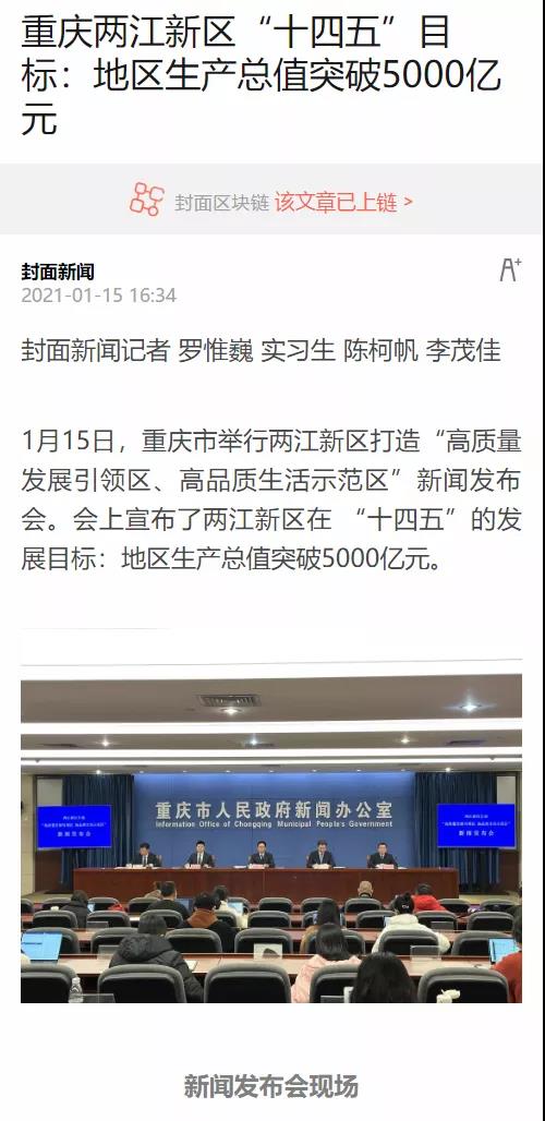 重慶之聲1月15日19點(diǎn)《968晚新聞》播出頭條消息:兩江新區(qū)打造高質(zhì)量發(fā)展區(qū)高品質(zhì)生活區(qū),2025年GDP將達(dá)5000億元。