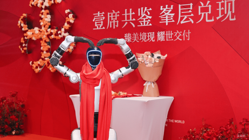 交付當(dāng)日,項(xiàng)目現(xiàn)場(chǎng)被悉心營(yíng)造為一場(chǎng)融合藝術(shù)、科技與人文關(guān)懷的歸家盛典。悠揚(yáng)的小提琴與豎琴演奏縈繞其間,為交房?jī)x式平添雅致氛圍;智能機(jī)器人獻(xiàn)上鮮花問候,預(yù)示未來智慧生活場(chǎng)景;由花藝大師精心構(gòu)筑的歸家花境與藝術(shù)長(zhǎng)廊,讓業(yè)主從踏入社區(qū)的第一步便感受到盎然生機(jī)與美學(xué)意趣。