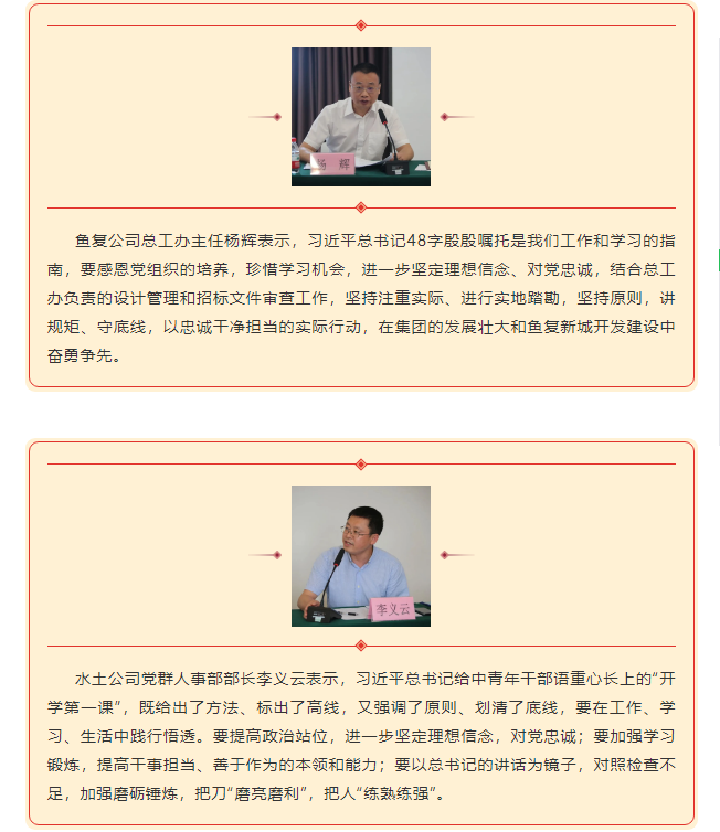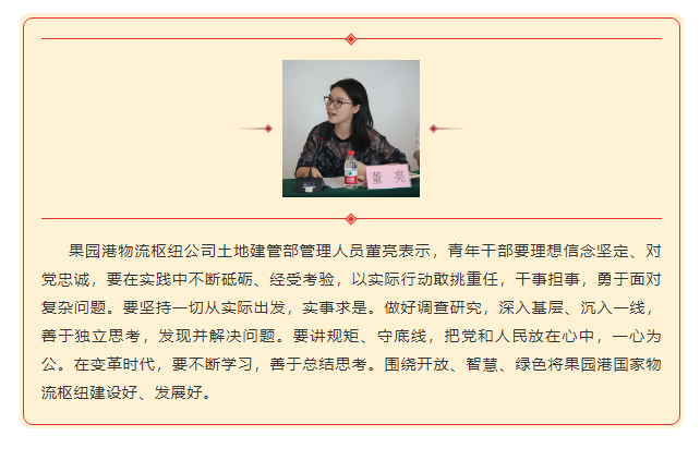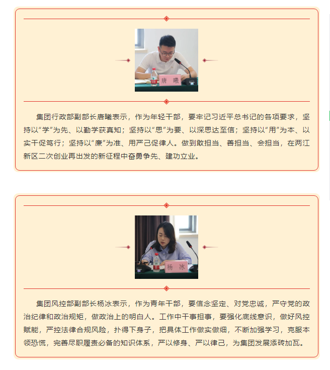 會上,來自集團各部門和子公司的21名中青年干部、年輕員工代表學(xué)習(xí)了習(xí)近平總書記在中青年干部培訓(xùn)班上的重要講話,并結(jié)合自身工作實際,談感想、談?wù)J識、談收獲、提建議?,F(xiàn)場氣氛熱烈,代表發(fā)言踴躍,充分展現(xiàn)出集團干部職工昂揚的精神狀態(tài)和飽滿的工作熱情。
